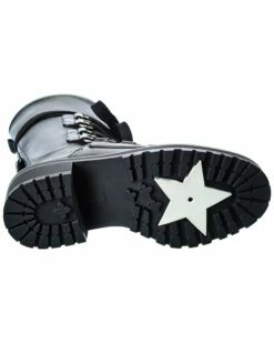 - D-Fight Leather Boot in black leather and silver-tone hardware with buckle accents