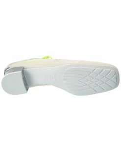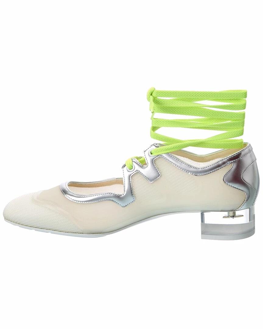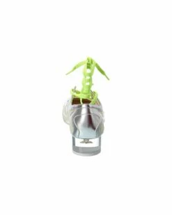 - D-Mension Rubber & Leather Pump in silver leather and transparent rubber with transparent heel and neon laces