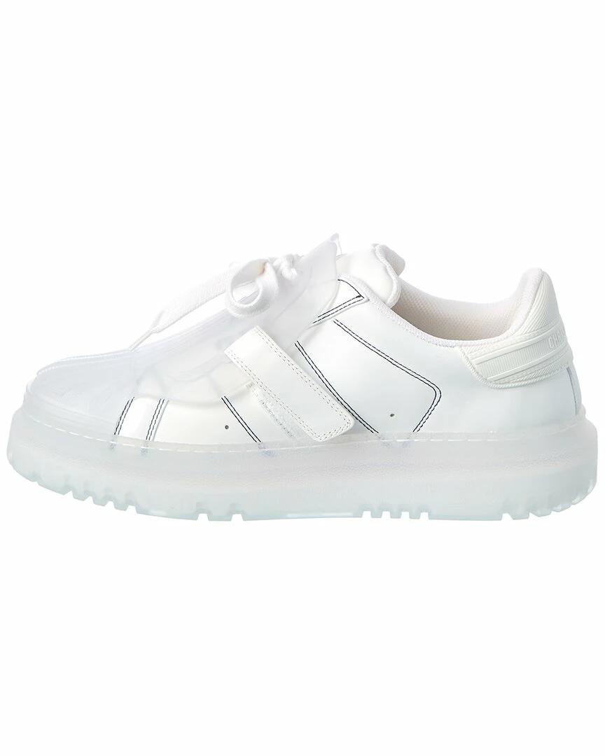 - Dior-ID Leather Sneaker in white leather with transparent rubber overlay and Velcro logo straps