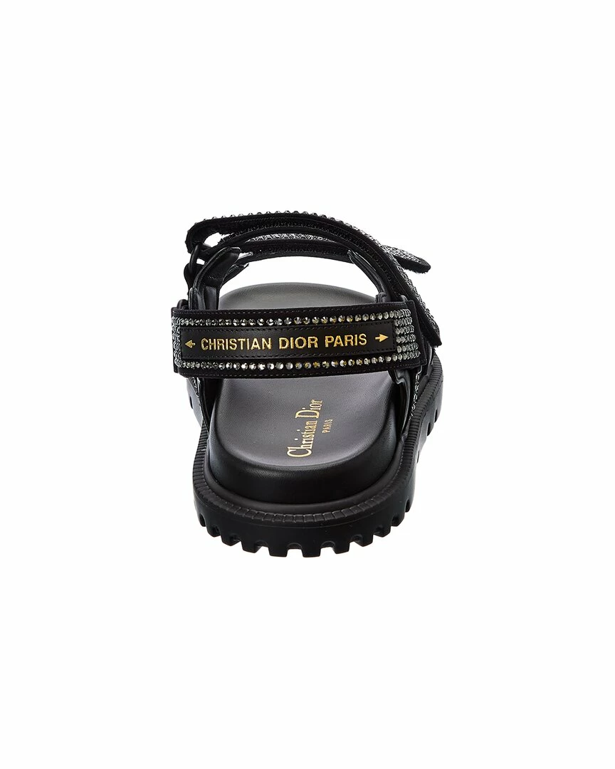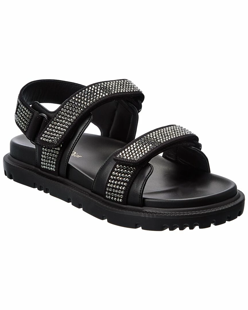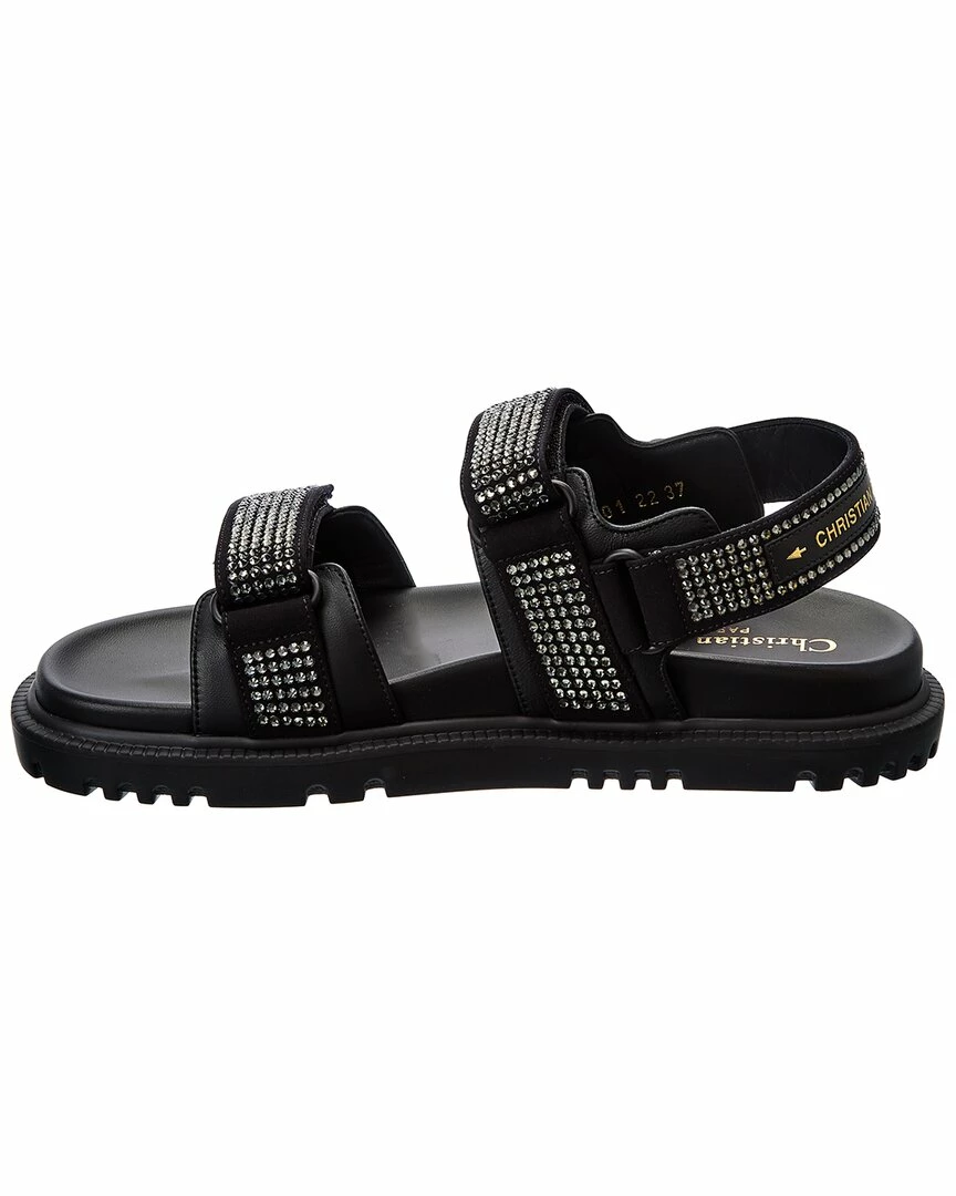- Dioract Leather Sandal in black leather with crystal embellishments