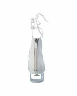 - Diorarty Patent Pump in white patent leather and silver-tone hardware with lace-up accent and transparent heel