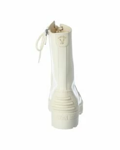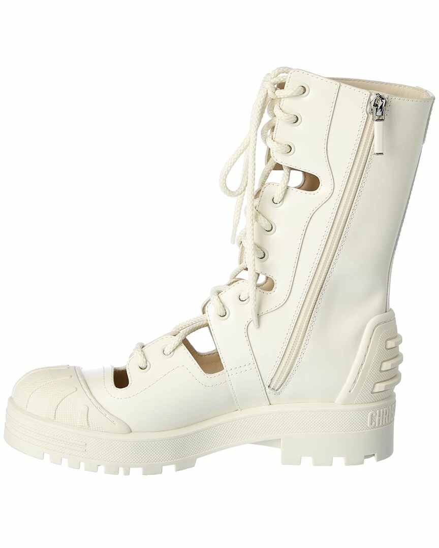 - Dioriron Leather Boot in beige leather and silver-tone hardware with open concept lace-up front
