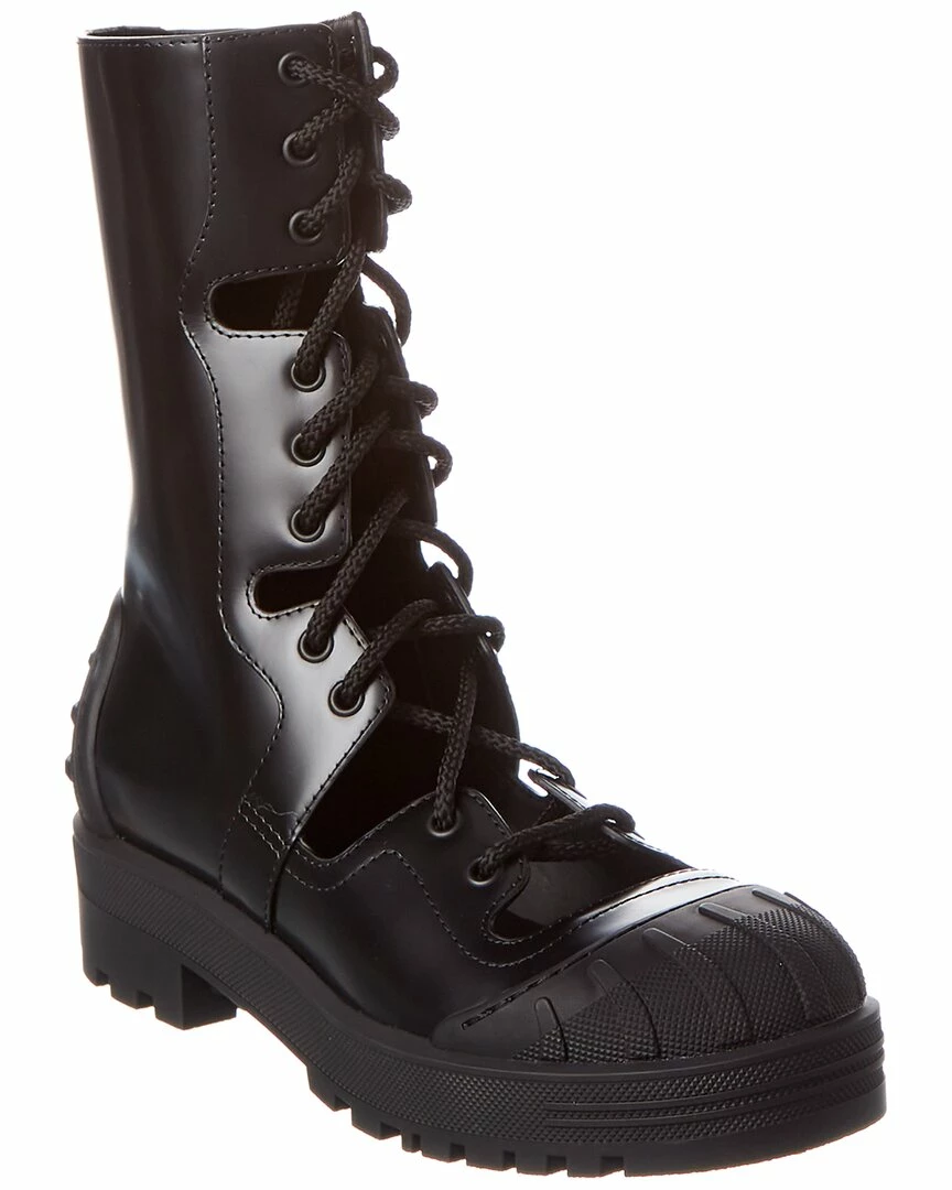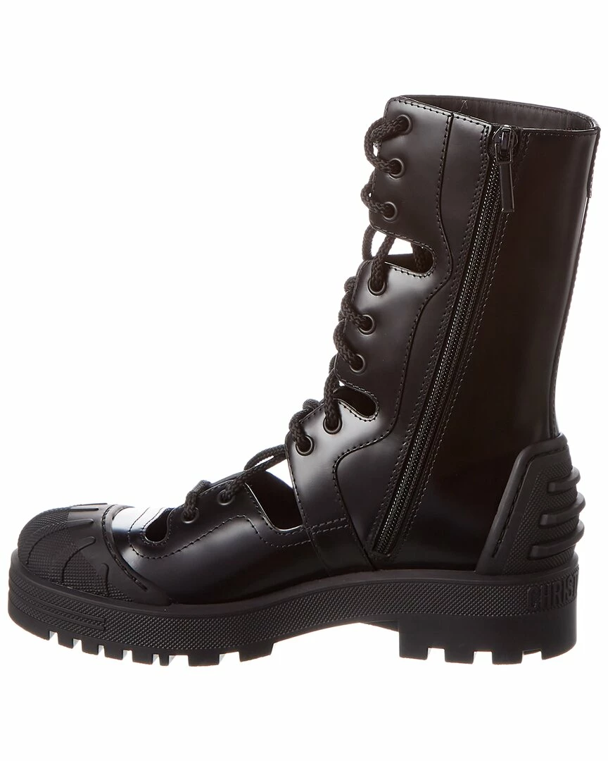 - Dioriron Leather Boot in black leather with cutout design and zipper accent
