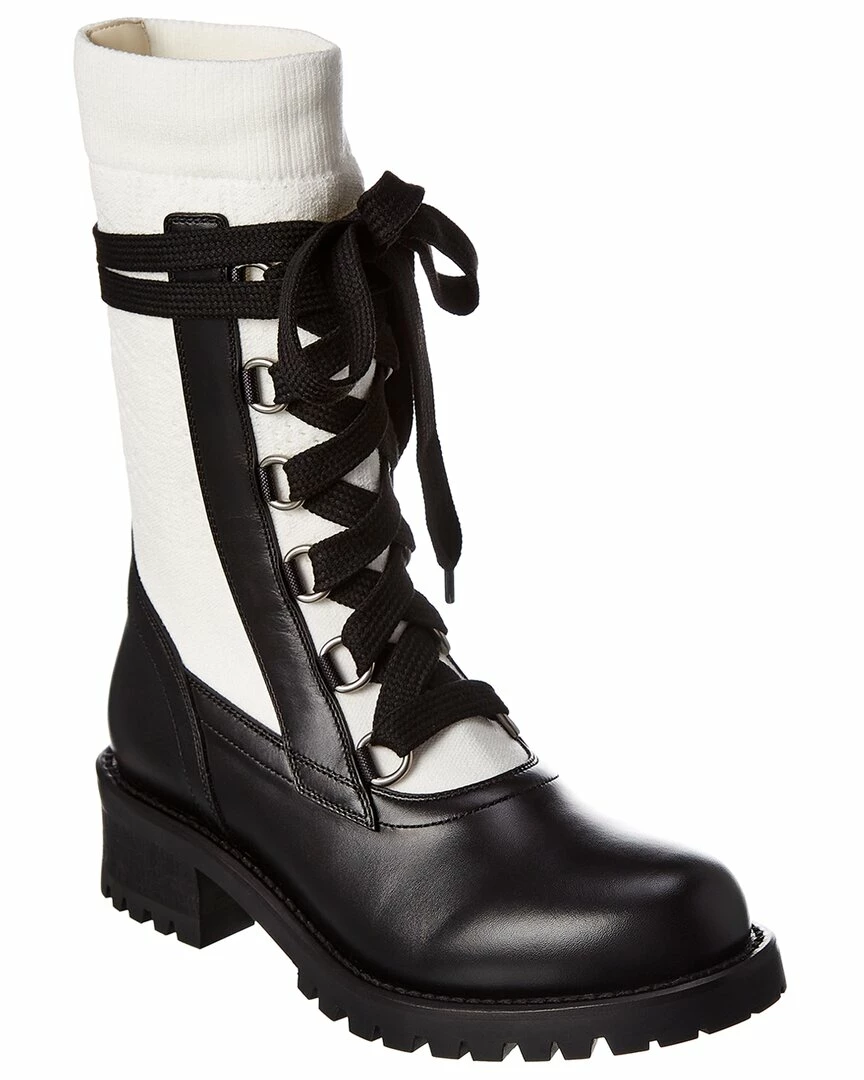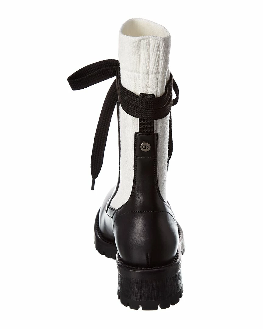 - Diorland Leather Boot in black leather and white textile and silver-tone hardware
