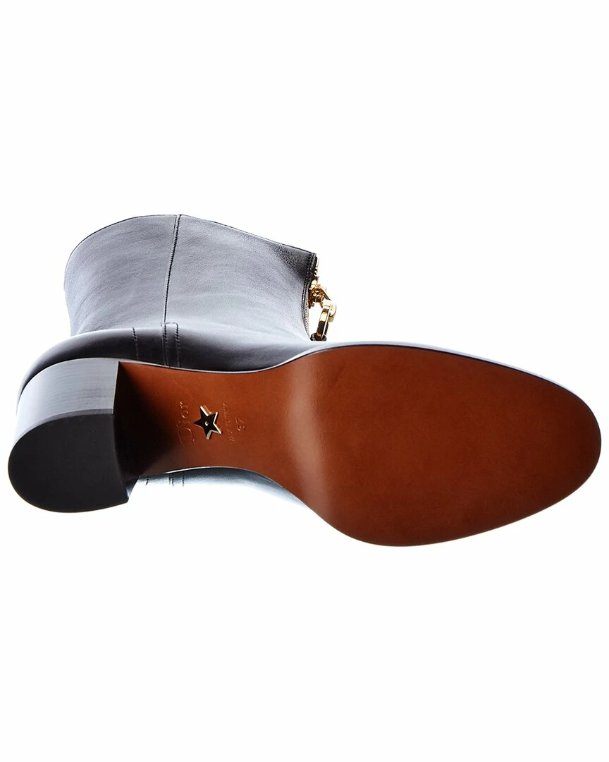- Leather Boot in black leather and gold-tone hardware with classic design