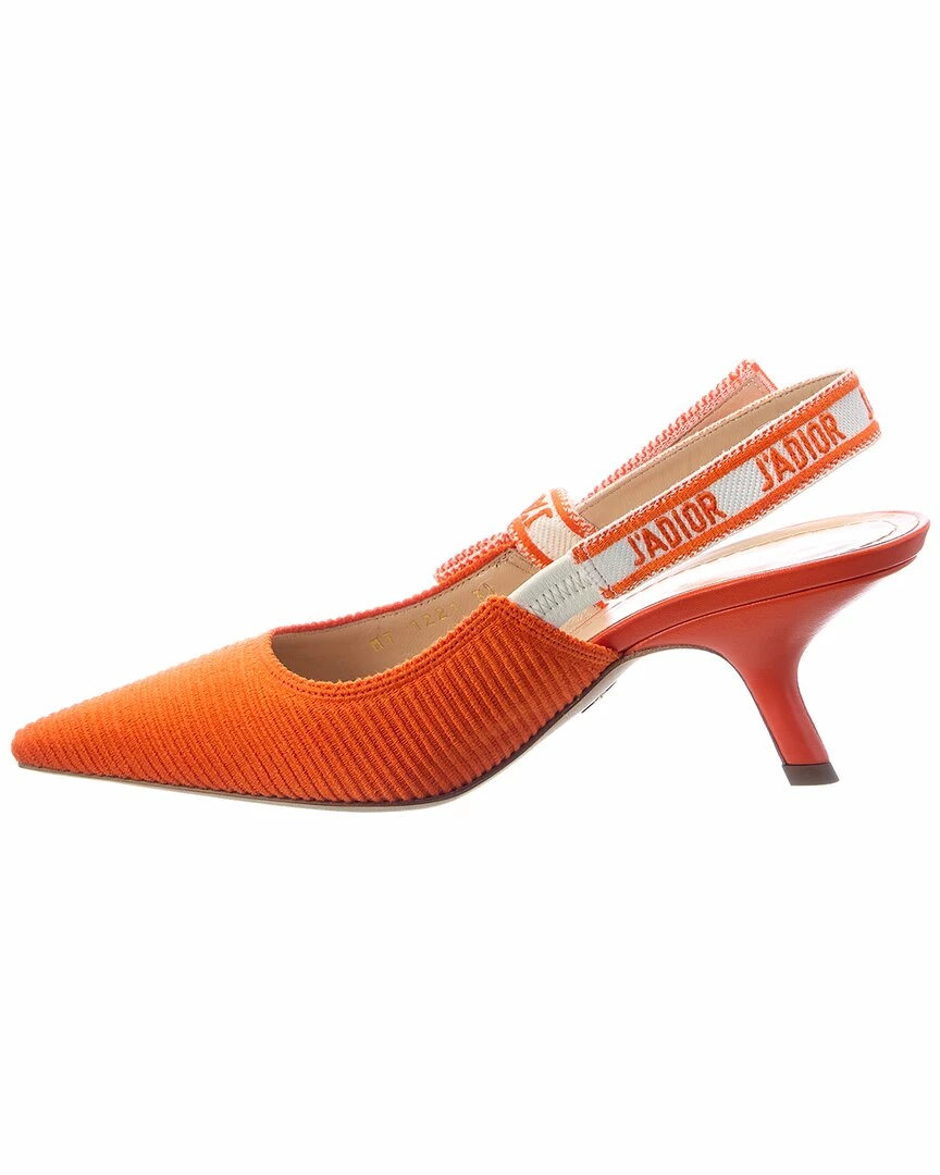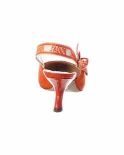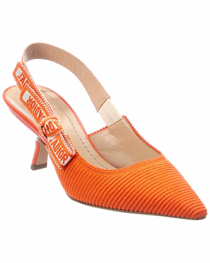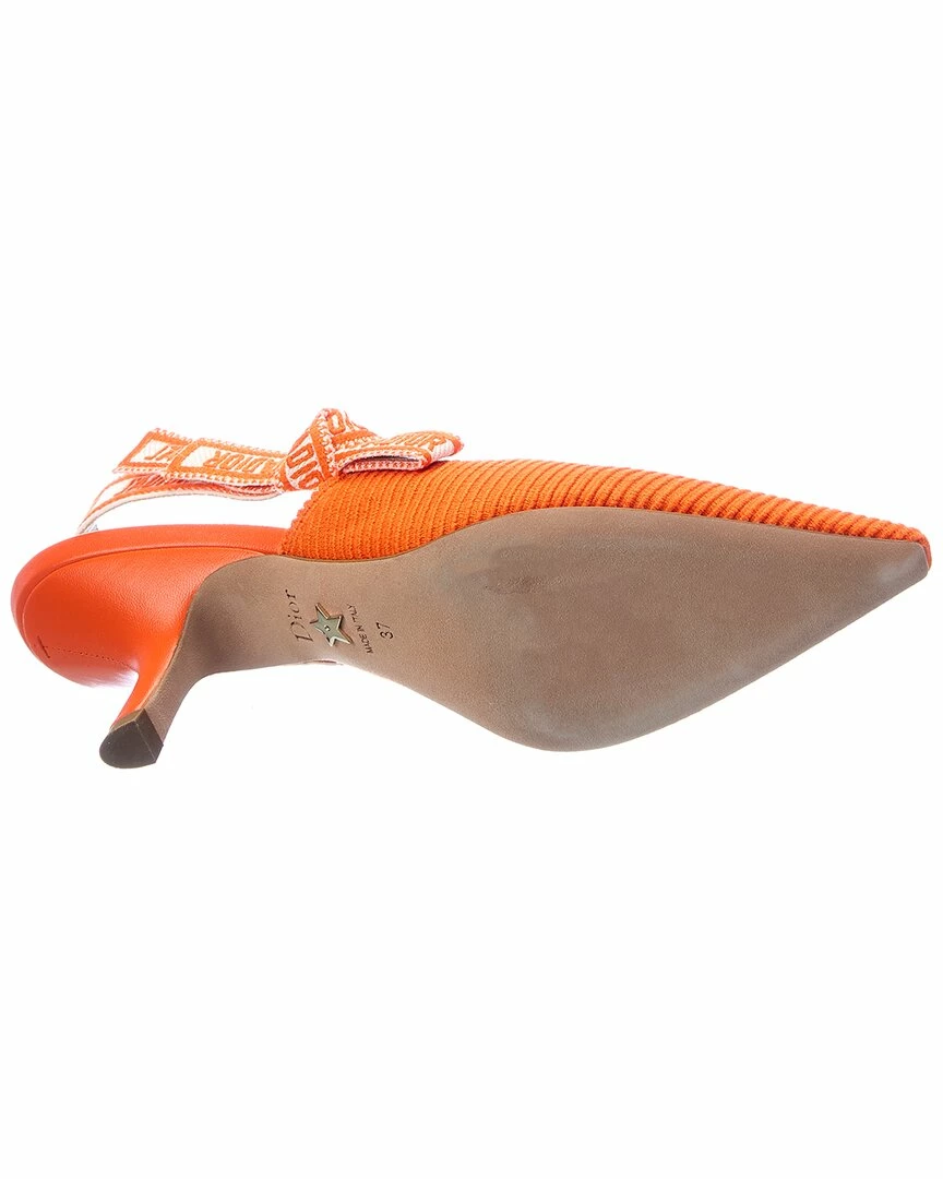 - J’Adior Canvas Slingback Pump in orange canvas with leather heel and logo-printed elasticized slingback strap with bow detail