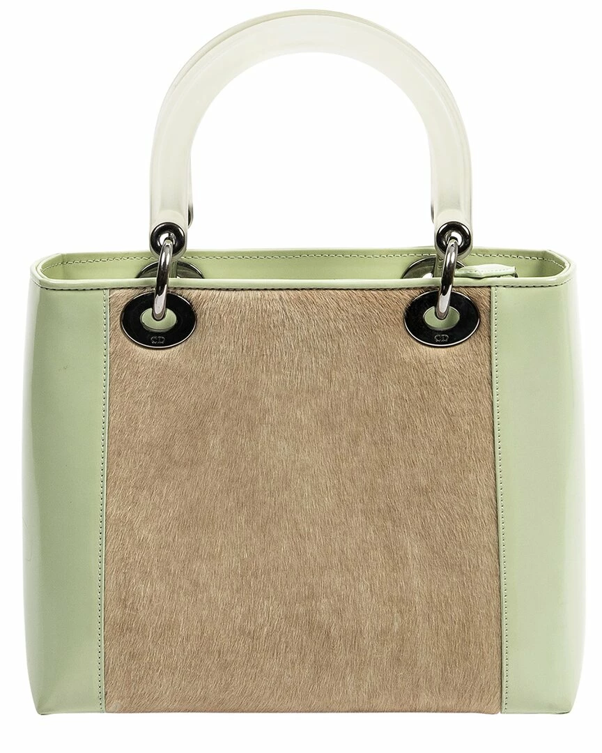 - Lady Dior MM in Limited Edition Light Green & Beige Ponyhair with logo jacquard lining and ruthenium hardware
