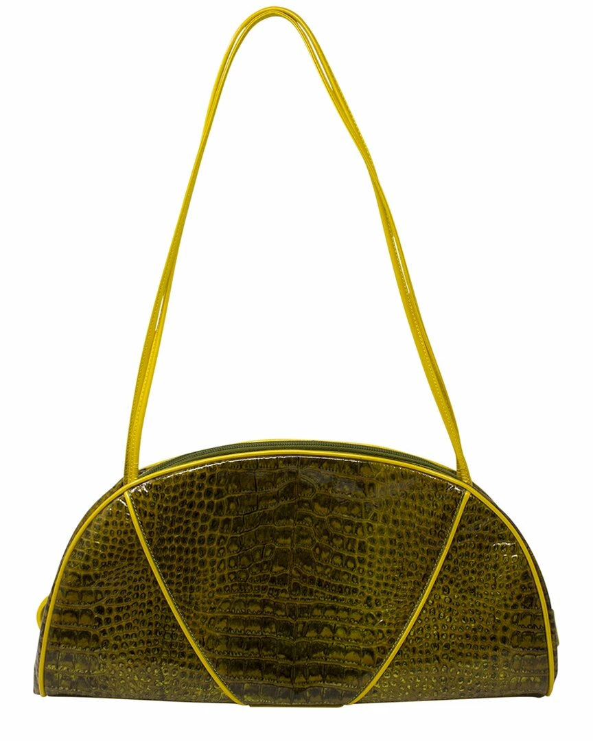 - John Galliano Shoulder Bag in Limited Edition Yellow Croc Embossed Leather with nylon lining and gold-tone hardware