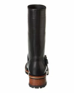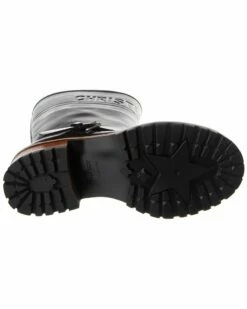 - Quest Leather Boot in black leather and silver-tone hardware with embossed logo and buckle accent
