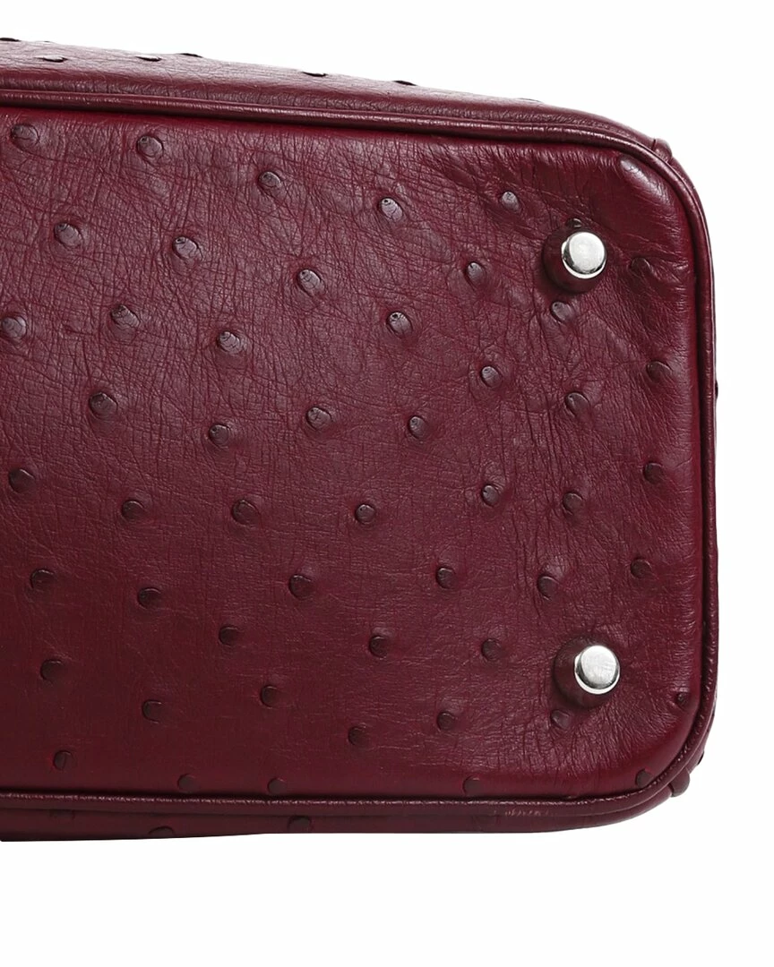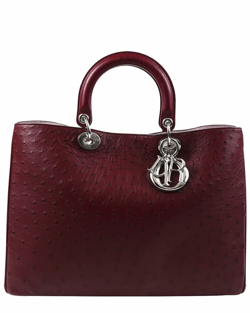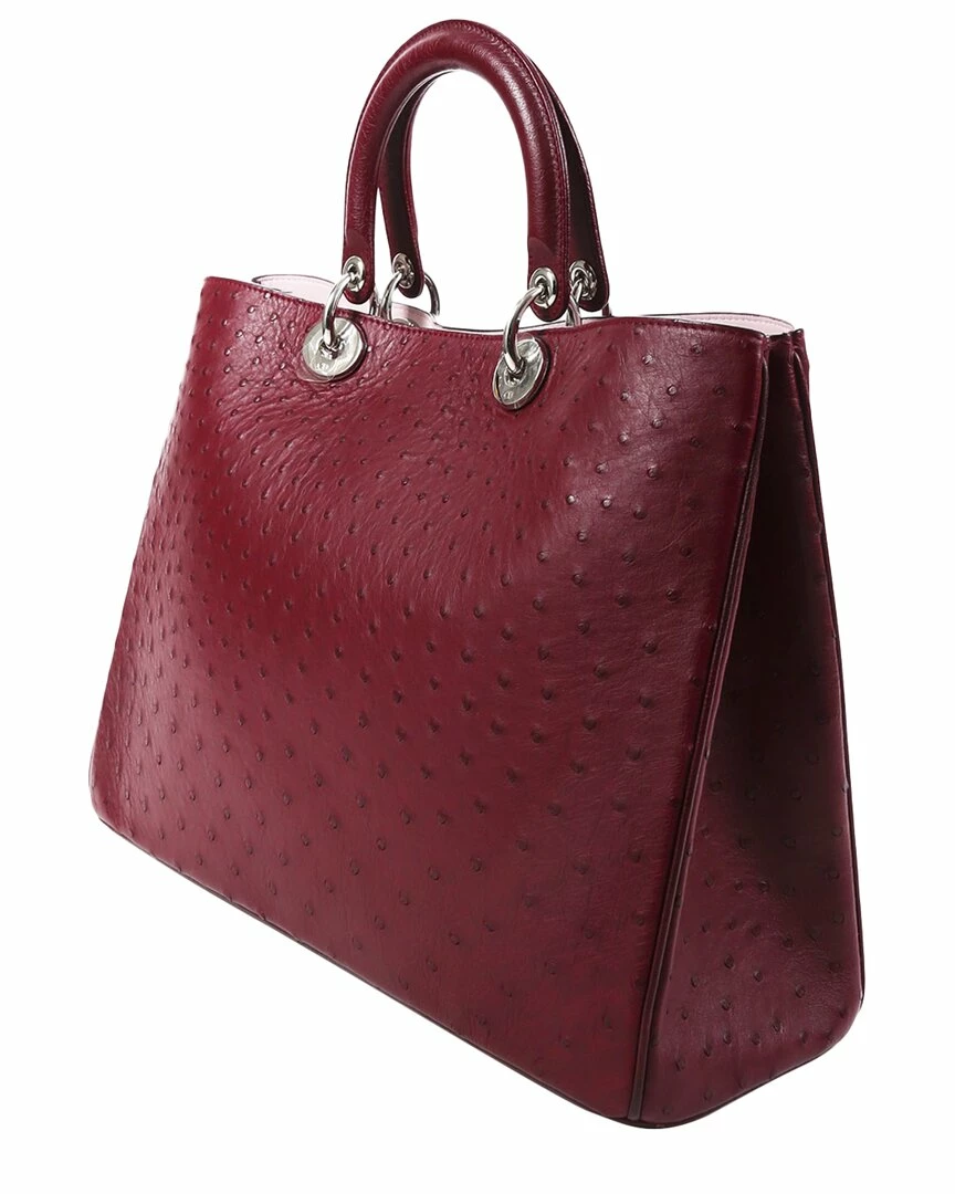 - Diorissimo Satchel in Red Ostrich Leather with leather lining and silver-tone hardware