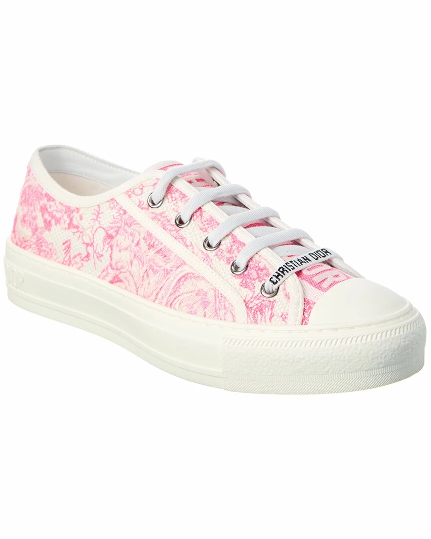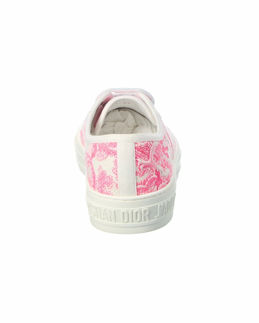 - Walk’N’Dior Canvas Sneaker in pink and white jacquard canvas and silver-tone hardware with logo printed laces