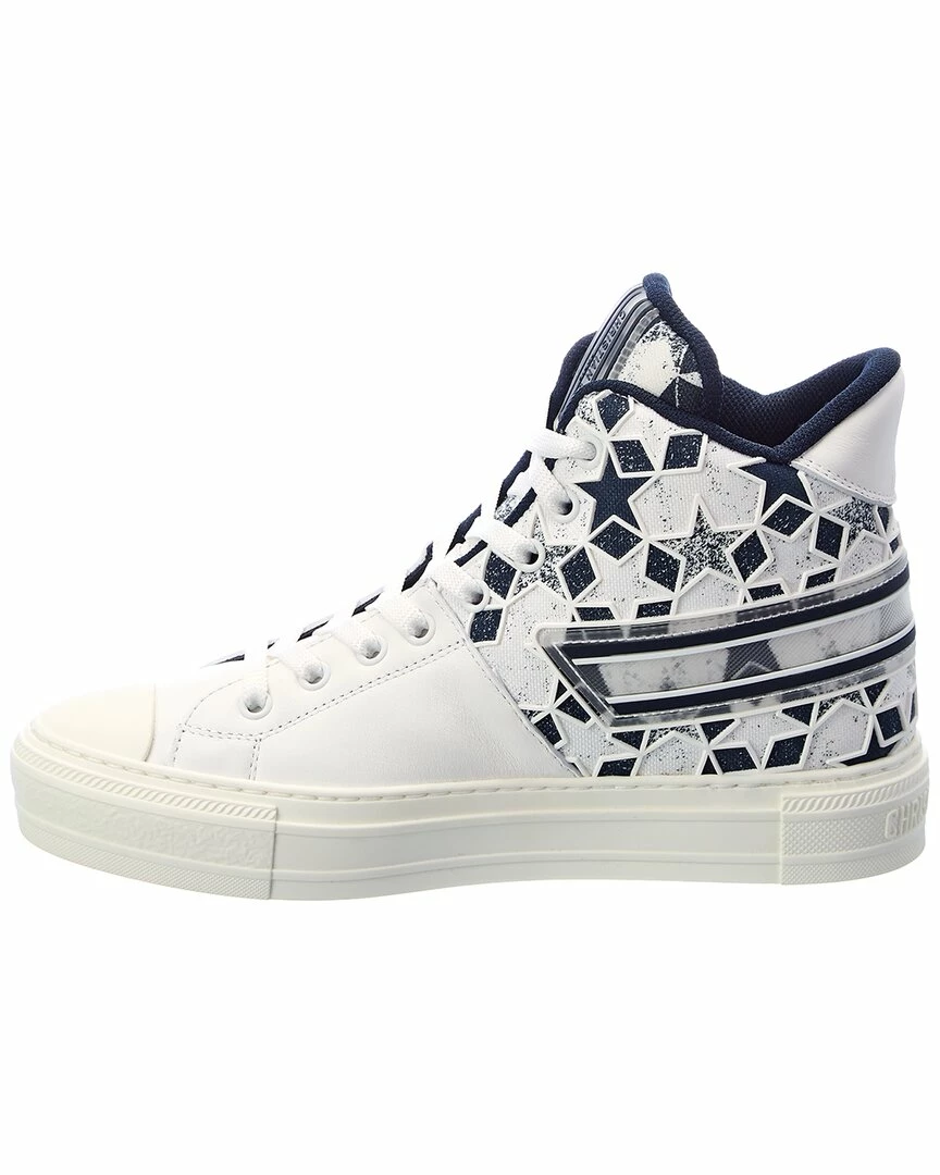 - Walk’N’Dior Star Leather & Canvas High-Top Sneaker in navy and white canvas and leather with rubber star and logo detailing